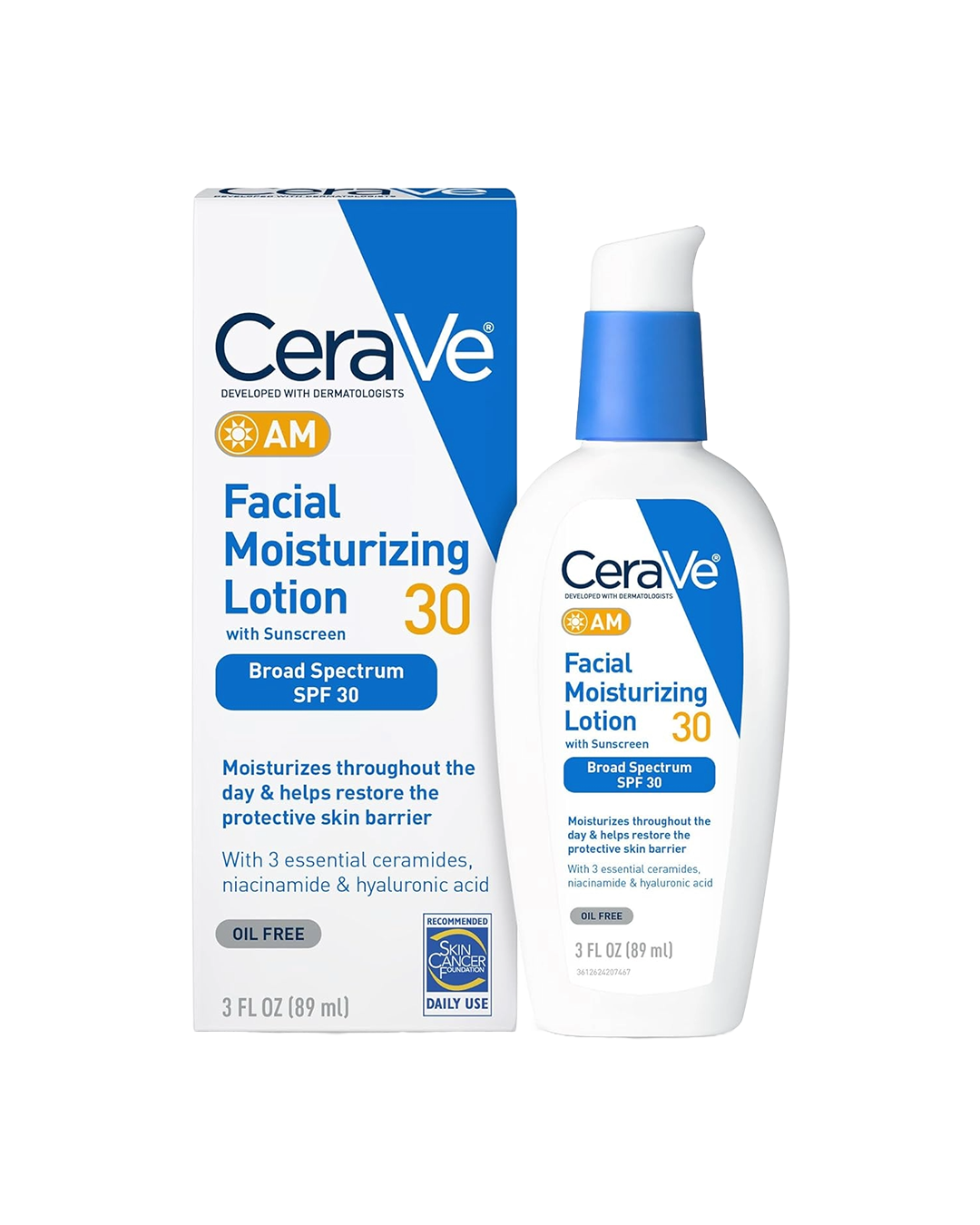 Start your day with CeraVe AM Facial Moisturizing Lotion with SPF 30, a lightweight, oil-free moisturizer that hydrates and protects your skin. Formulated with essential ceramides, hyaluronic acid, and niacinamide, this lotion helps restore the skin's barrier while providing broad-spectrum UVA and UVB protection.