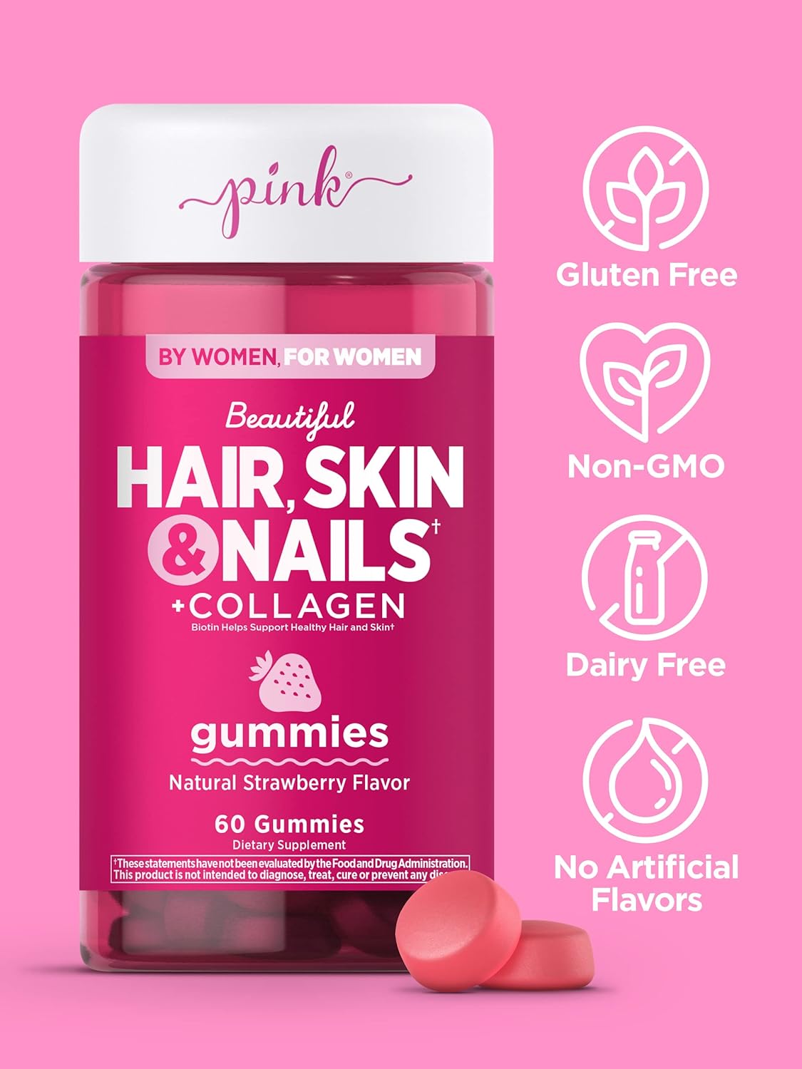 Pink Beautiful Hair, Skin, Nails + Collagen Gummies