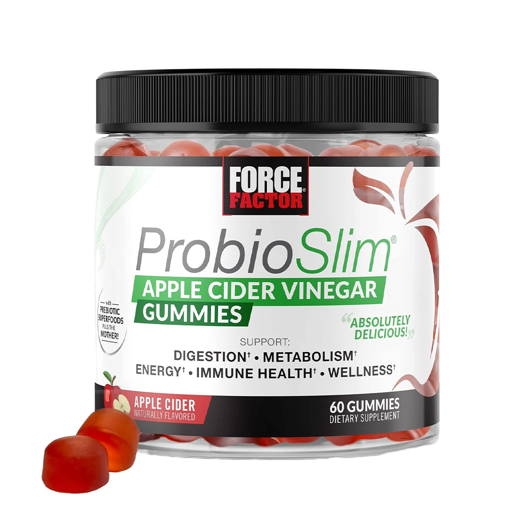 Enjoy the benefits of apple cider vinegar in a delicious gummy! Force Factor ProbioSlim Apple Cider Vinegar Gummies support digestion, metabolism, and appetite control—all with a refreshing apple flavor. Made with real ACV and added probiotics, these gummies help you feel your best every day.
