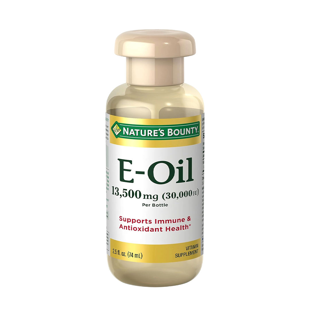 Support your immune system and antioxidant health with Nature's Bounty E-Oil. This 13,500mg (30,000 IU) Vitamin E oil blend combines soybean, corn, sesame, wheat germ, and lemon oils to nourish and protect your body from oxidative stress. Suitable for oral and topical use.