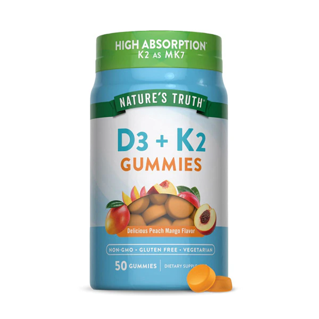 Nature’s Truth D3 + K2 Gummies combine two essential nutrients that work together for stronger bones and cardiovascular wellness. Vitamin D3 helps absorb calcium, while K2 directs it to bones instead of arteries, supporting bone density and heart health. These fruity gummies are a tasty way to get the benefits daily.