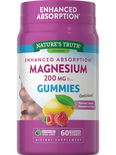 Experience the essential power of Magnesium with Nature's Truth® Magnesium Gummies! Our vegan gummies offer an incredible 200 mg of the essential mineral in every serving paired with natural lemon raspberry flavor. Our gummies are specially formulated with Magnesium Citrate, a combination of salt and citric acid, which is highly bioavailable and easy for the body to absorb. Plus, they also feature Lemon Balm, a fragrant herb from the mint family. At Nature's Truth®, we make it our mission to provide the highest quality supplements; that's why our Magnesium Gummies are non-GMO, gluten free, wheat free, yeast free, milk free, lactose free, soy free, and free of artificial flavors and sweeteners. Start experiencing the rewards of Magnesium today!