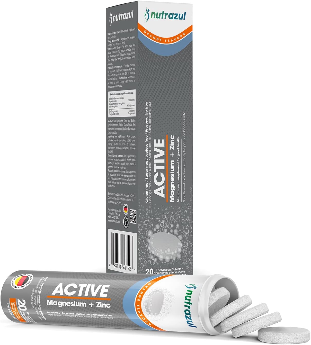 Nutrazul ACTIVE (Magnesium and Zinc) Effervescent Tablets- Orange 20’s | 20 Days Supply | Gluten Free, Sugar-Free, Lactose-Free & Preservative Free | Maintains Muscle Function | Maintains Normal Electrolyte Balance