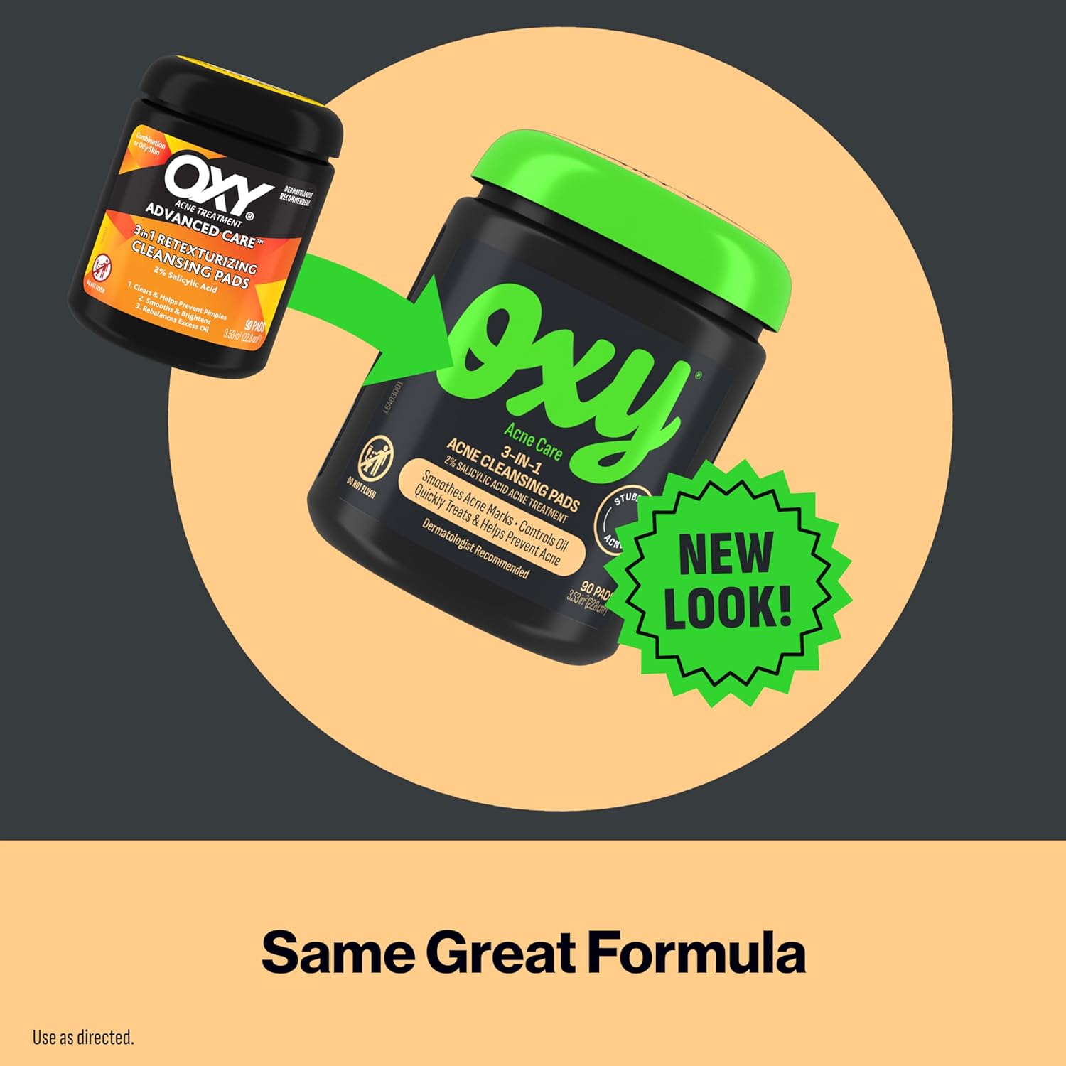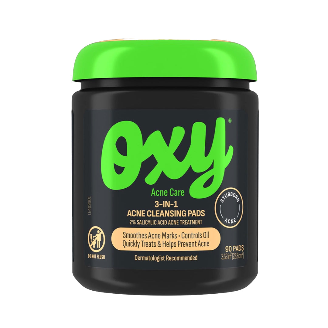 Clear, treat, and prevent breakouts with Oxy Maximum Action 3-In-1 Treatment Pads. Infused with maximum-strength 2% salicylic acid, these pads work to unclog pores, reduce oil, and prevent future breakouts, giving you clearer skin fast.