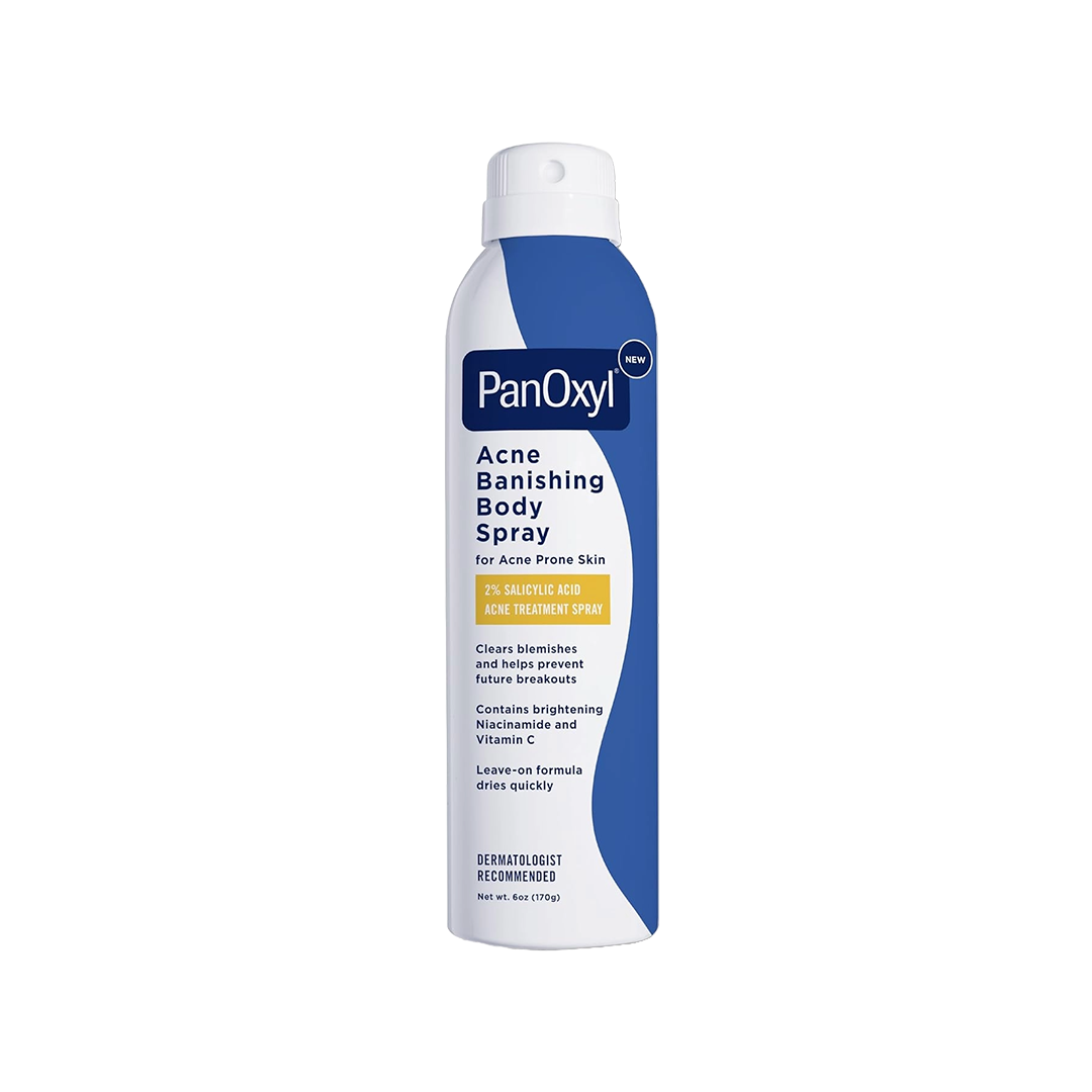 PanOxyl Acne Banishing Body Spray is designed to treat and prevent body acne with a powerful 2% Salicylic Acid formula. The addition of Niacinamide and Vitamin C helps brighten the skin, while Witch Hazel and Aloe provide soothing benefits. The 360-degree spray nozzle ensures even coverage, making it easy to apply to areas like the back and shoulders. This leave-on formula dries quickly, is fragrance-free, and paraben-free, making it suitable for daily use.