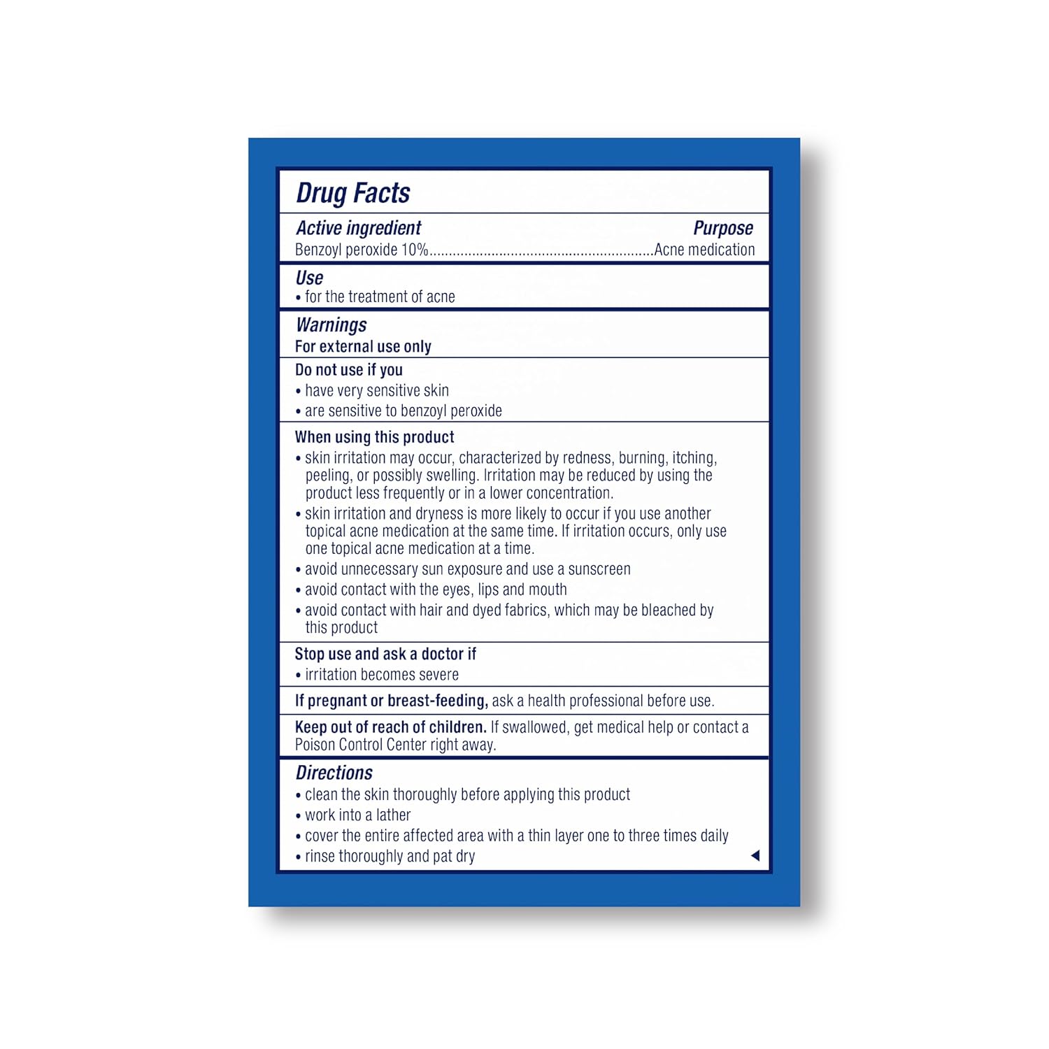 The active ingredient is Benzoyl Peroxide (10%). Other ingredients include Aqua (Water), Cetearyl Alcohol, Decyl Glucoside, Dextrin, Glycerin, Sodium Chloride, Sodium Cocoyl Isethionate, and Tetrasodium Glutamate Diacetate.