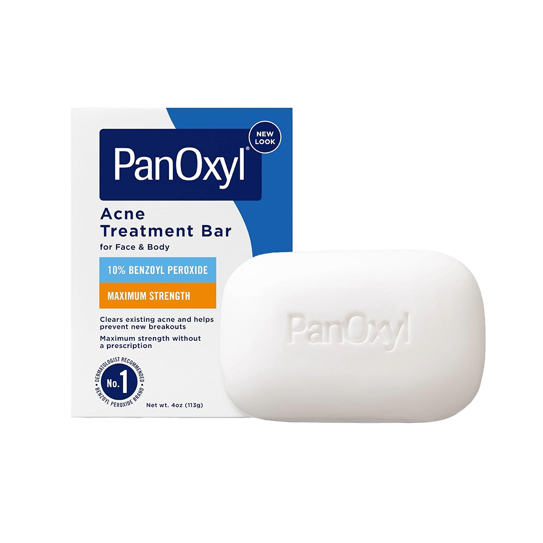 PanOxyl Acne Treatment Bar delivers the highest concentration of Benzoyl Peroxide available without a prescription. This pH-balanced, soap-free bar effectively eliminates acne-causing bacteria, unclogs pores, and removes excess oil. Ideal for use on the face, chest, and back, it helps clear existing blemishes and prevent new ones from forming. The formula is vegan, fragrance-free, and dye-free, making it suitable for sensitive skin.